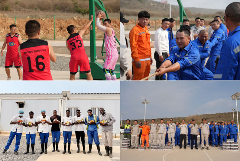 洛比托炼油厂项目驻地同样热闹非凡,项目部为全体中安员工精心准备了定制礼包。其中,象征团圆的中秋月饼成为现场“爆款”,不仅慰藉了远离故土的中国员工的思乡之情,也让安哥拉同事通过这一传统美食,近距离感受到中国文化的魅力。随后开展的篮球、拔河等友谊赛,再次点燃节日气氛。中外员工同场竞技、奋勇争先,既释放了工作压力,也加深了彼此情谊。员工们纷纷表示,将以更加饱满的热情投入炼油厂建设,以务实行动推动项目高质量落地。